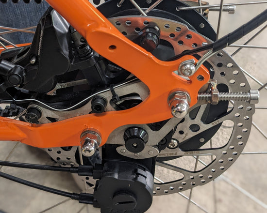 All in One: Vertikale ausfallenden mit Bremssattelaufnahme und Einstellschrauben - universal für Ketten- und Nabenschaltung