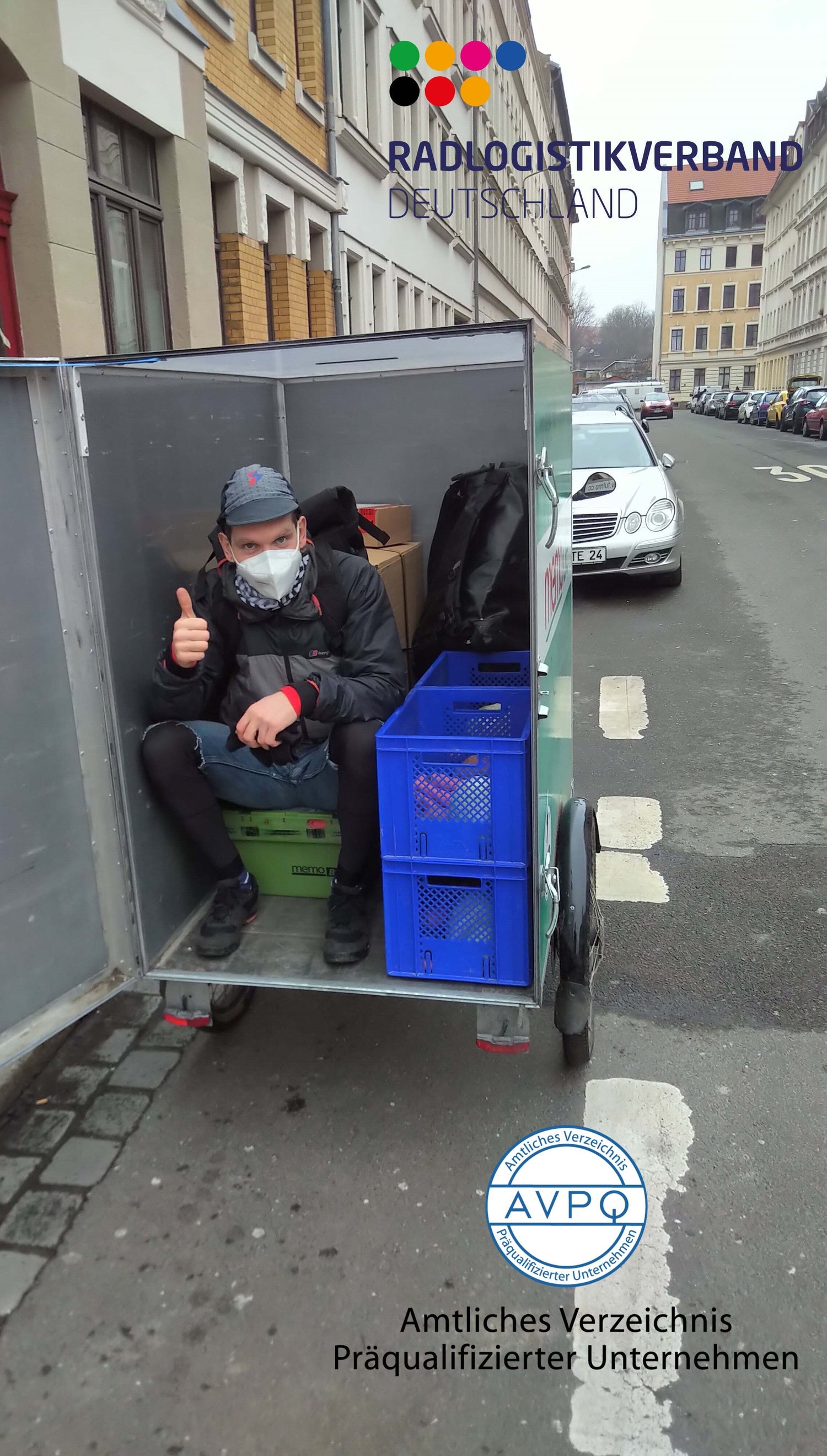 Unsere Fahrradkurier:innen geben alles, um die Sendungen schnellstmöglich ans Ziel zu bringen. Im Leipziger Stadtgebiet sind wir mit unseren Hubs Nord-Ost, Süd und West immer in der Nähe. Ob eiliger Briefumschlag oder schwere Europalette - mit unserer Lastenradflotte haben unsere Fahrradkurier:innen für jeden Auftrag das richtige Fahrzeug am Start. Wir sind mit unserem Know-How bei den deutschen Industri- und Handelskammern (DIHK) als präqualifiziertes Unternehmen gelistet. Als Mitglied des Radlogistikverband Deutschland (RLVD) sind wir auch über die Stadtgrenzen hinweg aktiv und vernetzt.