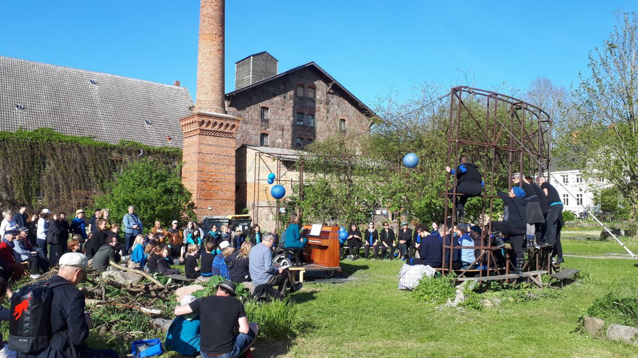 Impressionen von der Idee über die Umsetzung bis hin zum ersten Einsatz bei der Prämiere des im poetischen Spektakel "Ins Blaue...!" des Berliner Chor-Theaters.