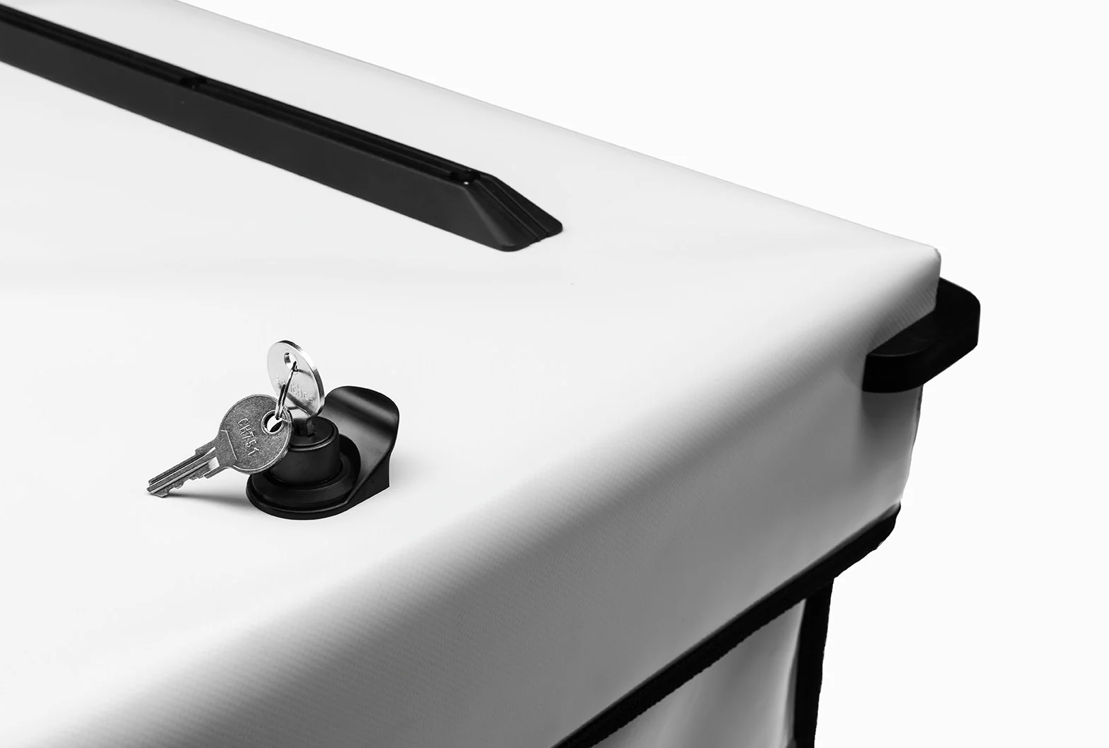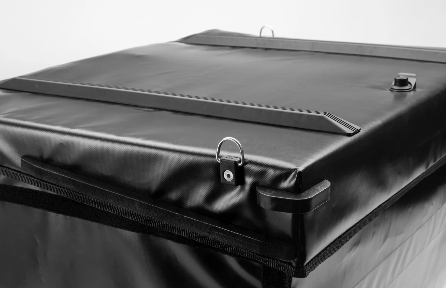 Entdecken Sie die Urban Trail 300 L, die leichteste und widerstandsfähigste Frontloader-Kiste auf dem Markt, mit einem Fassungsvermögen von 300 Litern. Leise, stoßfest und vollständig wasserdicht ist er mit einem verstärkten Deckel ausgestattet, um übergroße Produkte zu laden. Hergestellt aus einer stabilen Hartschale und PVC-Plane wiegt dieser Behälter 15 kg und trägt bis zu 80 kg. Sein optional herausnehmbarer Trenner hilft dabei, das Gewicht zu verteilen und den Inhalt sowie den Fahrer wirksam zu schützen.