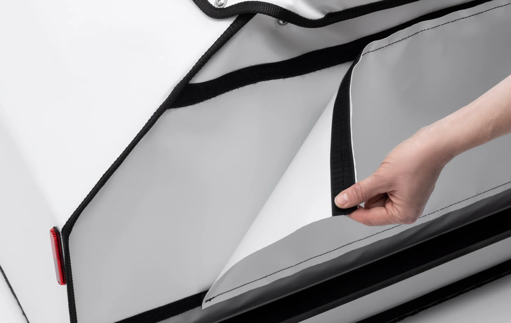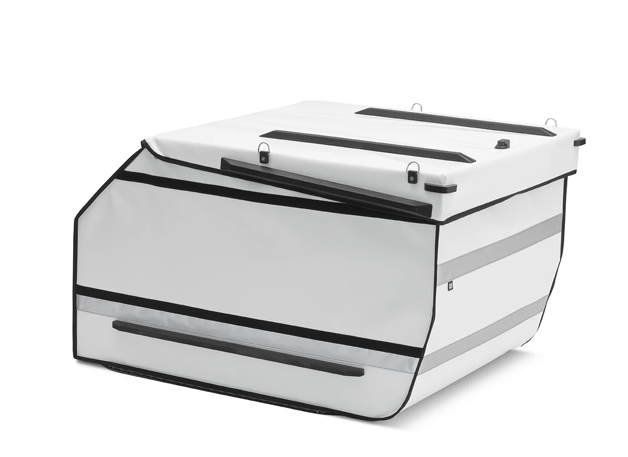 Entdecken Sie die Urban Trail 400 L, die leichteste und widerstandsfähigste Frontloader-Kiste auf dem Markt, mit einem Fassungsvermögen von 400 Litern. Leise, stoßfest und vollständig wasserdicht ist er mit einem verstärkten Deckel ausgestattet, um übergroße Produkte zu laden. Hergestellt aus einer stabilen Hartschale und PVC-Plane wiegt dieser Behälter 20 kg und trägt bis zu 100 kg. Sein optional herausnehmbarer Trenner hilft dabei, das Gewicht zu verteilen und den Inhalt sowie den Fahrer wirksam zu schützen.