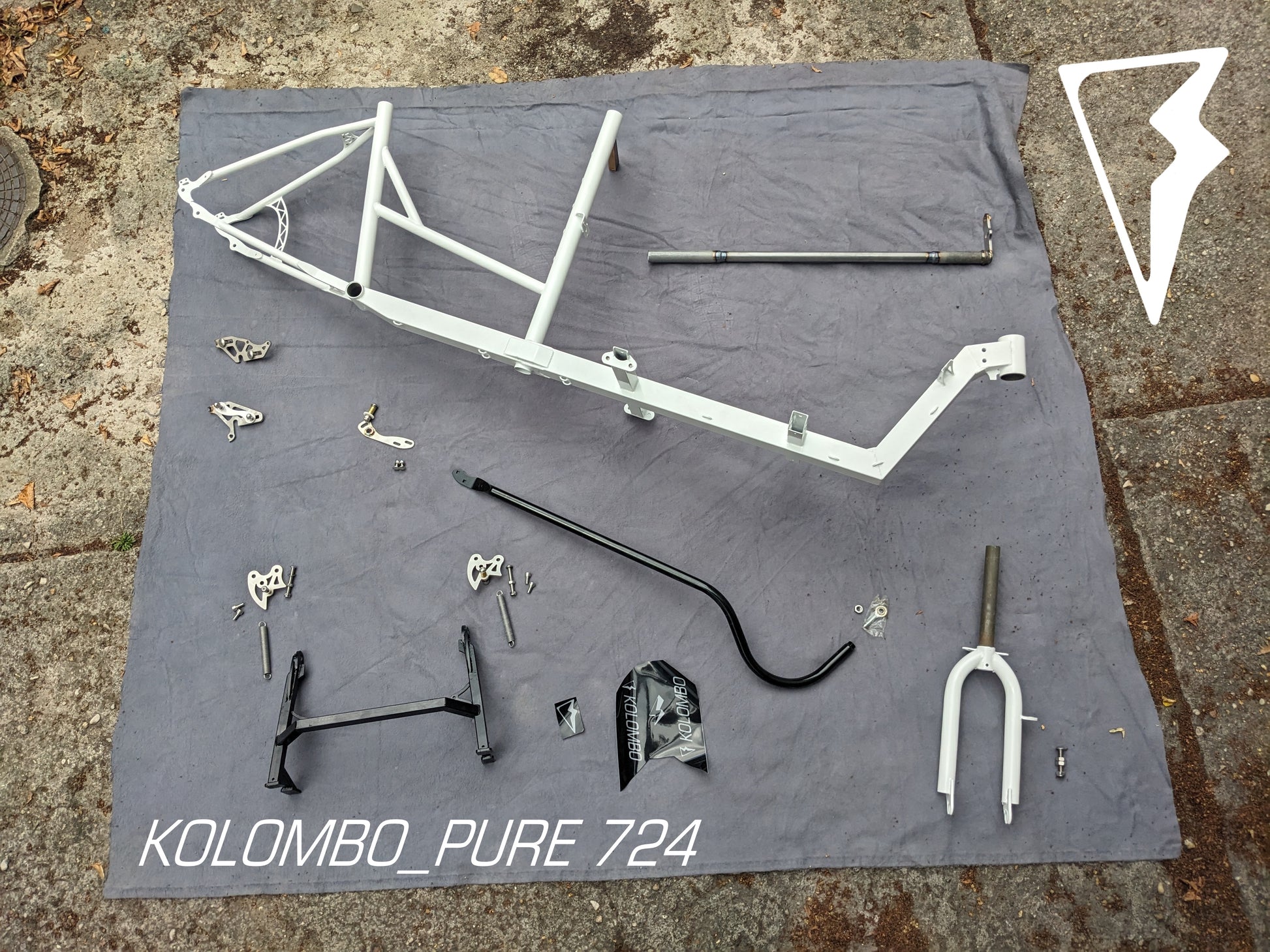 Alles, was du für dein Projekt brauchst: Das KOLOMBO 724 Frame-Kit mit Gabel, Ständer, Lenkstange, Lenkrohr, Universal-Ausfallenden, sowie sämtlichen Lagern und Schrauben. In Standard Verkehrsweiß RAL 9016 (auf Lager) oder deiner Wunschfarbe auf Anfrage. Mehr Details findest du hier oder bei einer persönlichen Beratung vor Ort.