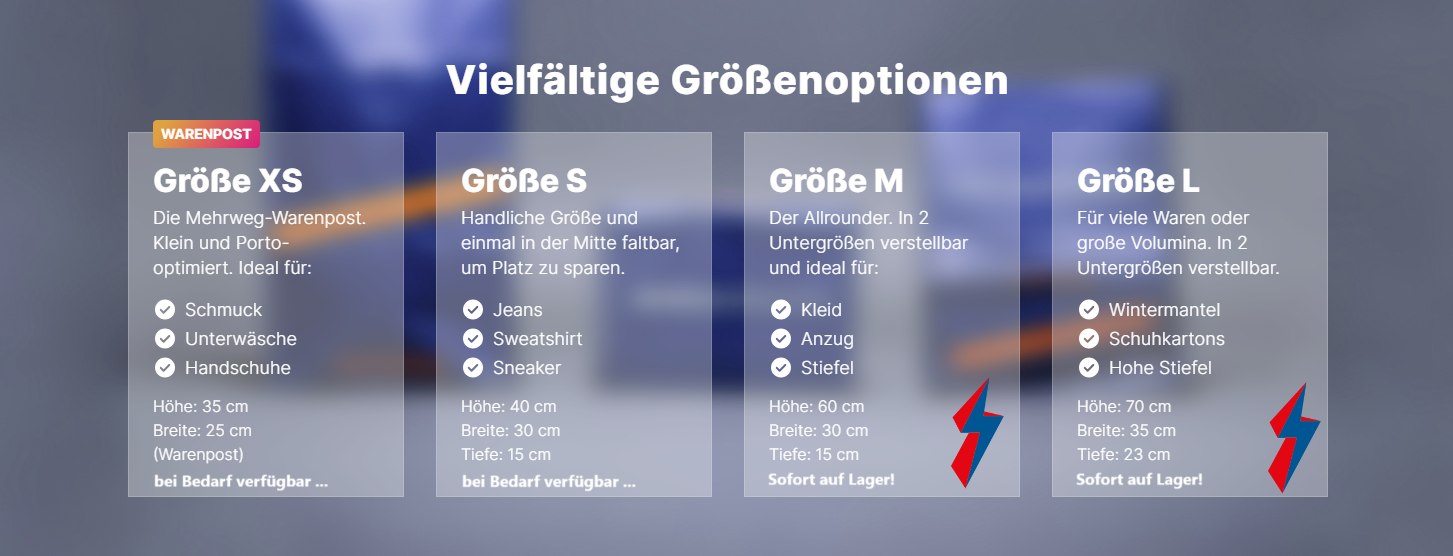 Nachhaltige Logistik braucht nachhaltige Verpackungen. Wir waren stets begeistert, wie viele von euch alles dafür getan haben, die Kartons und Umschläge so lange wie möglich am Leben zu halten. Seit Beginn haben wir kostenlose Rückführung von Pfandbehältern mit angeboten, um die Vorreiter:innen unter unsere Kund:innen zu unterstützen.